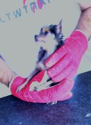 A homeopátiával gyógykezelt család kedvence Bubi, a beltenyésztett 900 grammos toy yorkshire leány, ma bőrtünetekkel érkezett. A homeopátiás kezelésre idegrendszeri tünetei, epileptiform görcskészsége visszaszorult, önállóan megy és eszik. Amint a képen érzékelhető látászavar miatt minden ingerre támadólag lép fel, ezért csak védőkesztyűben rögzíthető a kezeléshez.
