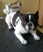 Mázli, a francia bulldog emésztőszervi tünetekkel érkezett, ezért a vizsgálatot és a gyógykezelést ma kissé házsártosan viselte.