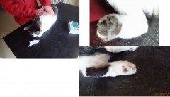 Sokadik állatorvosként az állat füleit átvizsgálva, "szerencsémre", eltávolítottam a bal oldali hallójárat gyulladást okozó toklászt. A korábbi huzamos kezelések a cica talppárnáin fokozott elszarusodását okozta (jobb felső kép; volt, aki ezeket égetéssel kezelte!), három hét múlva a helyi ápolás jótékony hatását szemlélteti a bal alsó felvétel.